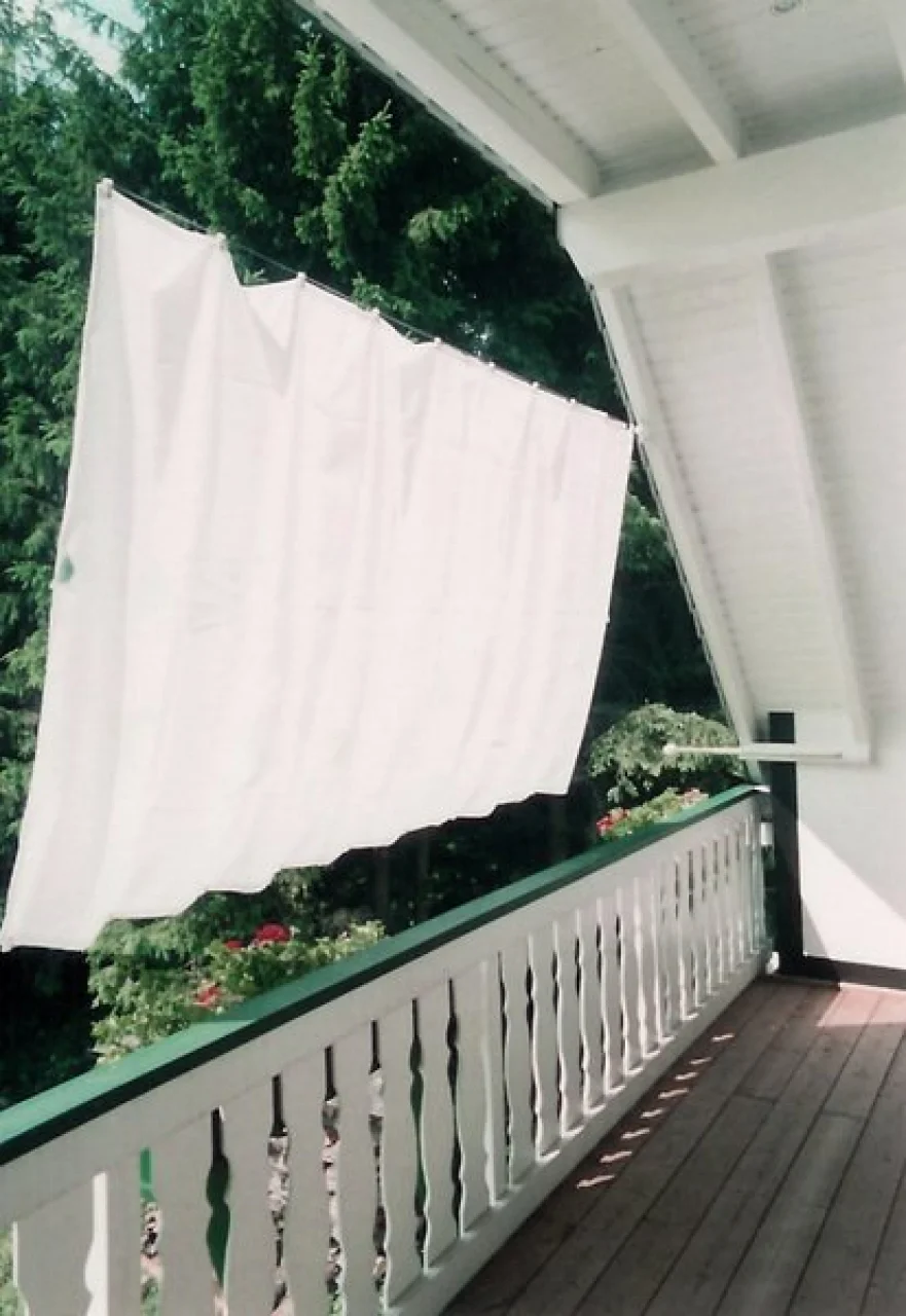 Sie "parken" dann ein Sonnenschutzsegel recht und eins links. - ist die gesamte Segellänge größer als die Balkonbreite, können Sie den Stoff auch einfach in Falten stehen lassen - ein schönes Faltsonnensegel oder Baldachin.