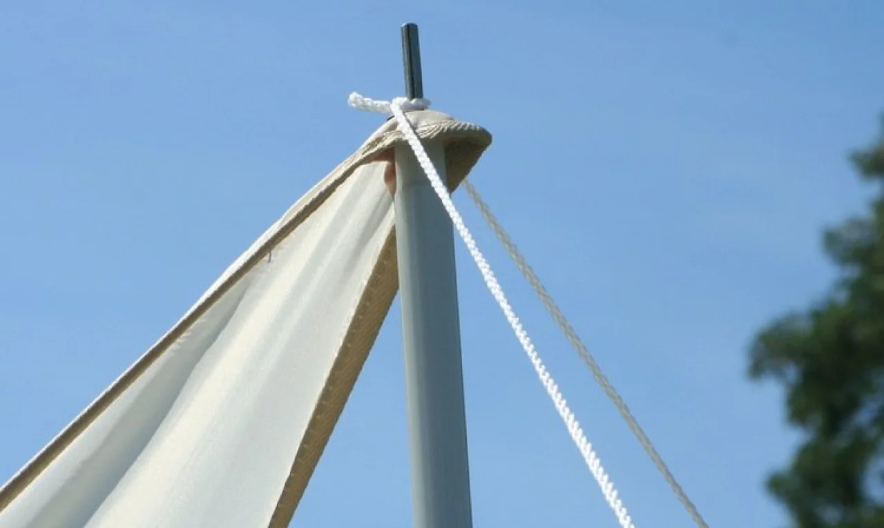 - unteres Ende mit Kunststoffkappe, damit sich die Stange nicht in den Boden bohrt. - 2x Kordel 3,0 m - zur Gegenspannung des Dreiecksonnensegels.