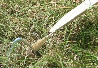 - unteres Ende mit Kunststoffkappe, damit sich dier Metallstab nicht in der Erde drückt.