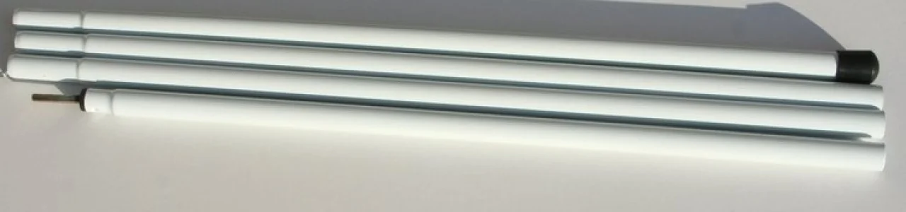 - 2x Metallstange zum Aufstellen, Höhe: 220 cm 4x geteilt - Stahlrohr 19 mm Durchmesser, 0,6 mm, verzinkt - weiß pulverbeschichtet-geteilt 4 Segmente je 55 cm mit Stahl-Federn (verhindern das wieder Herausrutschen) Oberes Ende mit Metallzapfen.- Einhängen des Segels - Befestigung der Gegenspannung mit beiliegender Kordel- unteres Ende der Metallstange mit Kunststoffkappe