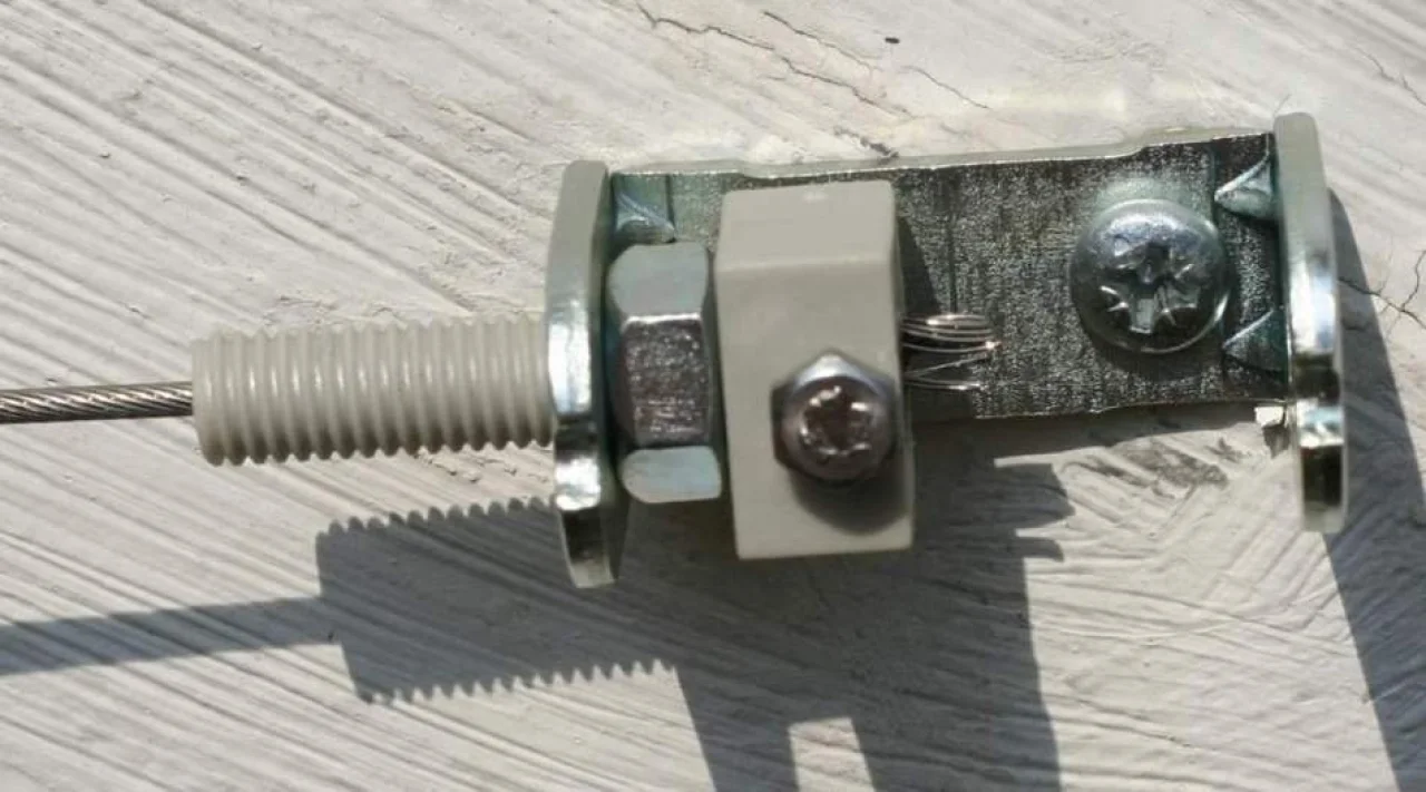 - Die Grundplatte der Universal Seilspanner schrauben Sie entweder direkt seitlich an die Sparren oder an die Querbalken haus- und gartenseitig, wenn der Querbalken im rechten Winkel zum Sparren steht.
