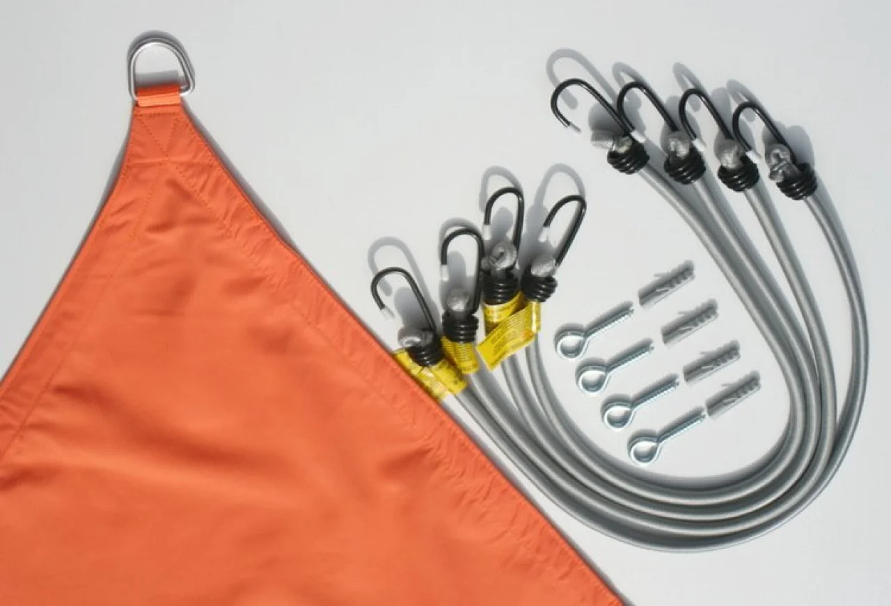 - 4x dauerelastischer Spanngurt - das Sonnenschutzsegel straff gespannt zu halten und vor hohen Windkräften zu schützen.