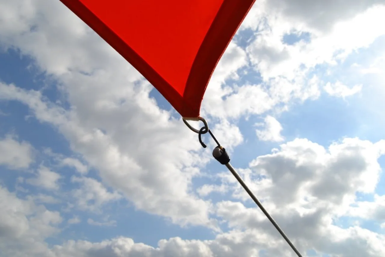 Das Vierecksegel zum Winter und bei drohendem Unwetter abnehmen.