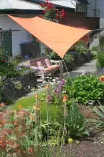 - Vierecksegel schräg aufhängen - es sieht gut aus, wenn man eine der vier Ecken ganz weit nach unten zieht, dann lönnen sich keine Wassersäcke bilden und dieser Teil des Sonnensegels bildt zudem einen Sichtschutz und evtl. auch Windschutz.
