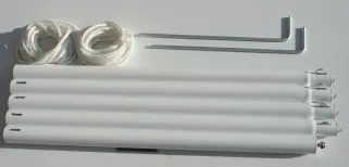 b) Mittelschwere Montagestange Sonnenschutzsegel konkav 2,7 m mit 2x Spannkordel und 2x Stabhering.