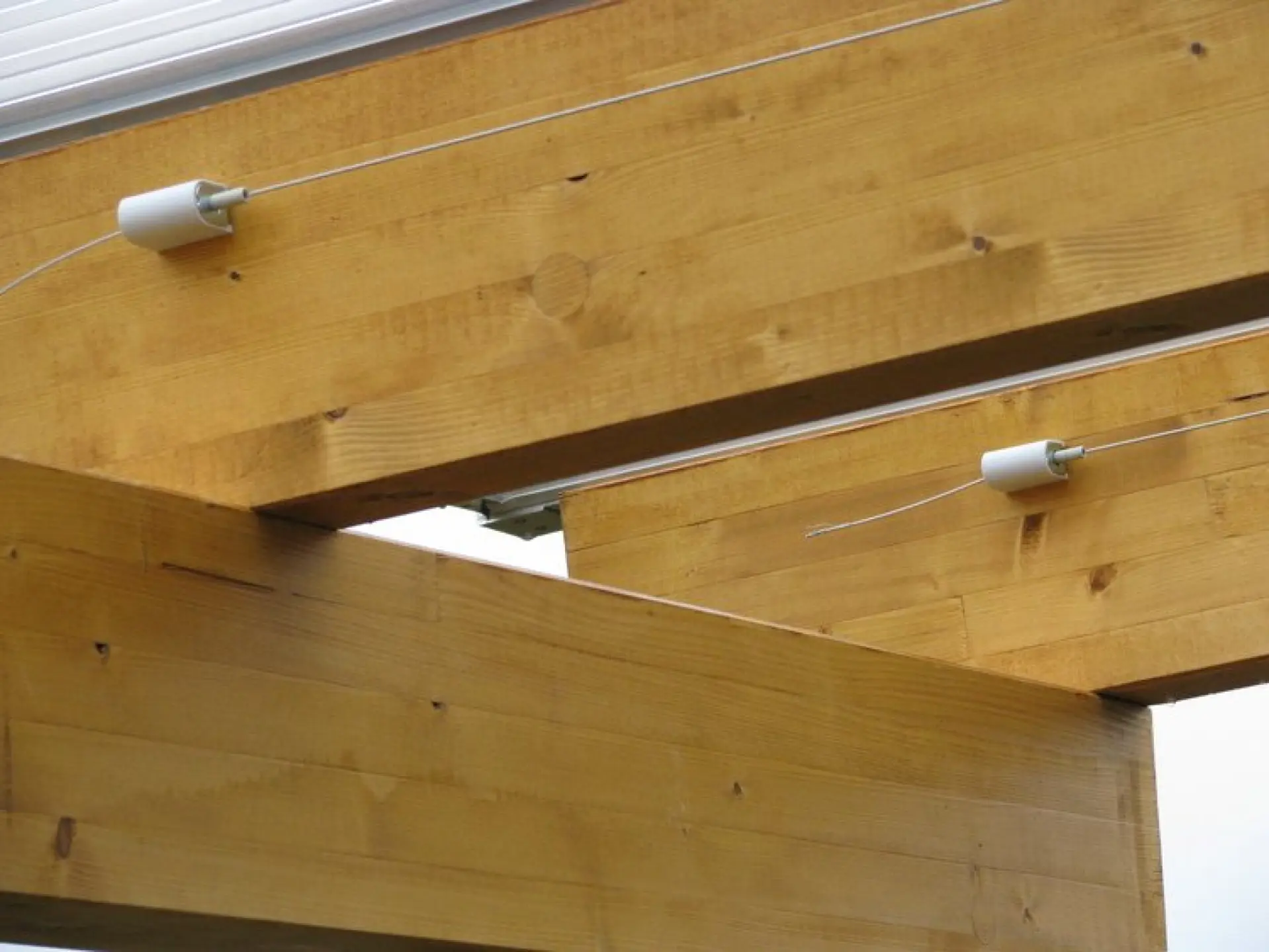Die zwei Edelstahlseile werden ca. 6 cm unterhalb vom Glas in der Fachlänge entlang der tragenden Sparren oder Alumniumkonstruktion gespannt.