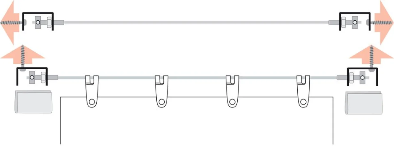 - Die Universal-Seilspanner der Seilspanntechnik werden über ihre Fußplatte seitlich auf die Holme der Terrassenüberdachung geschraubt - dazu reicht eine Bohrschraube je Seilspanner Universal.