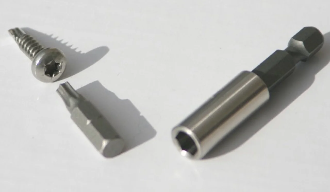 Für die Montage von Sonnensegeln in Seilspanntechnik in einzelne Glasfächer einer Terrassenüberdachung aus Aluminium benötigne Sie eine passende Bohrschraube - damit Sie schnell montieren können brauchen Sie für diese Bohrschraube noch einen Torx-BitEinsatz, der die Bohrschraube stabil hält und ein leichtes Bohren mit dem Akkudreher ermöglicht, ohne daß Ihnen die Schraube wegrutscht (wie das bei einer Kreuzschlitzschraube passieren würde).