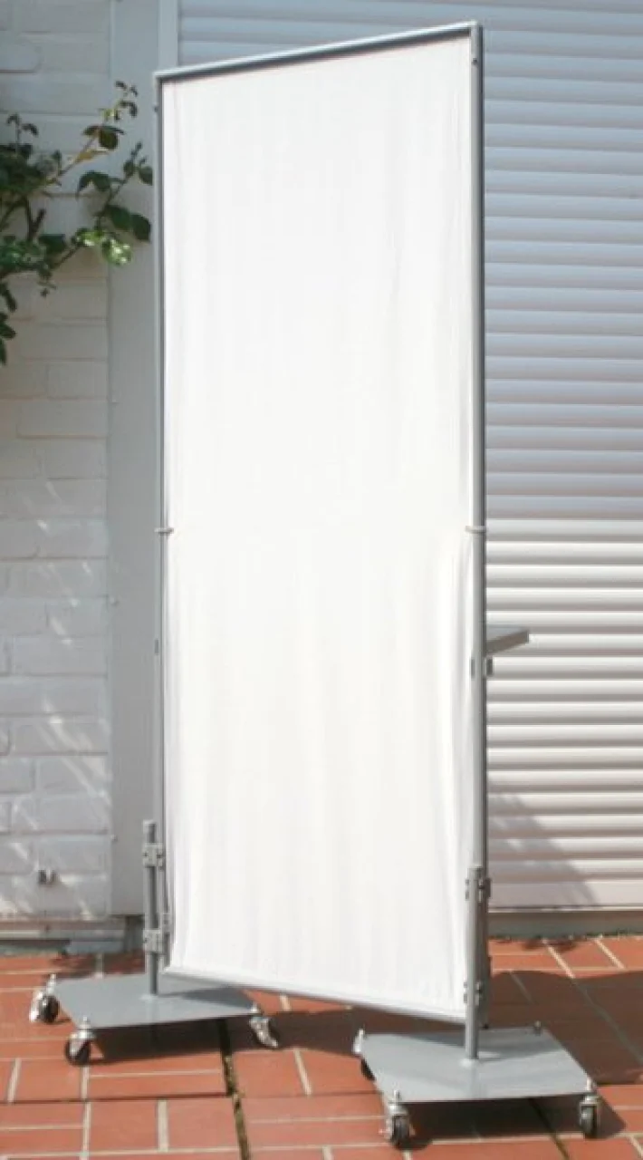 Rollbare Fußplatte besonders geeignet bei häufigem Wechsel des Standortes vom Sichtschutz Paravent