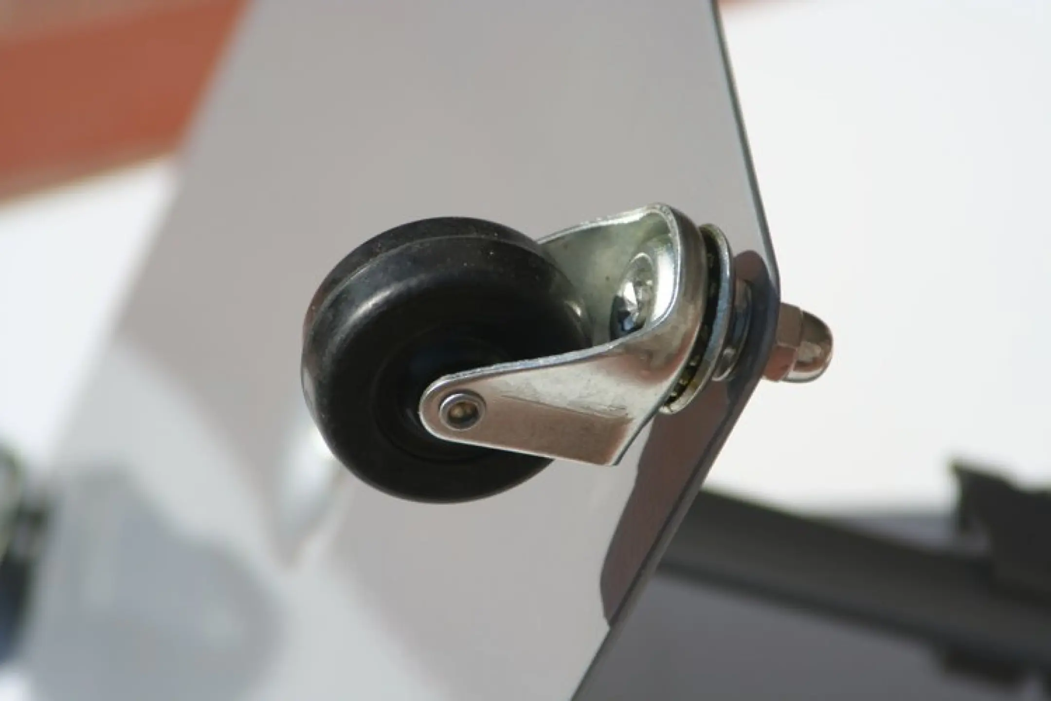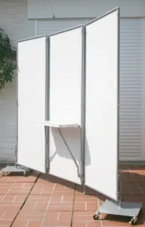 Mit 4x Lenkrollen unter jeder Fußplatte Paravent kann die Trennwand ganz leicht auch mit einem Fuß verschoben werden, ohne die Hände nutzen zu müssen. Das ist wichtig in Bereichen, wie im Catering oder in Operationsräumen, wo man nicht nur für einen kleinen Handgriff die Hände waschen möchte oder neue (teure) Handschuhe anziehen will.