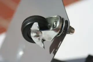 Durch die 2x feststellbaren Lenkrollen der rollbaren Fußplatte Paravent kann der Raumteiler auf einem festen Boden