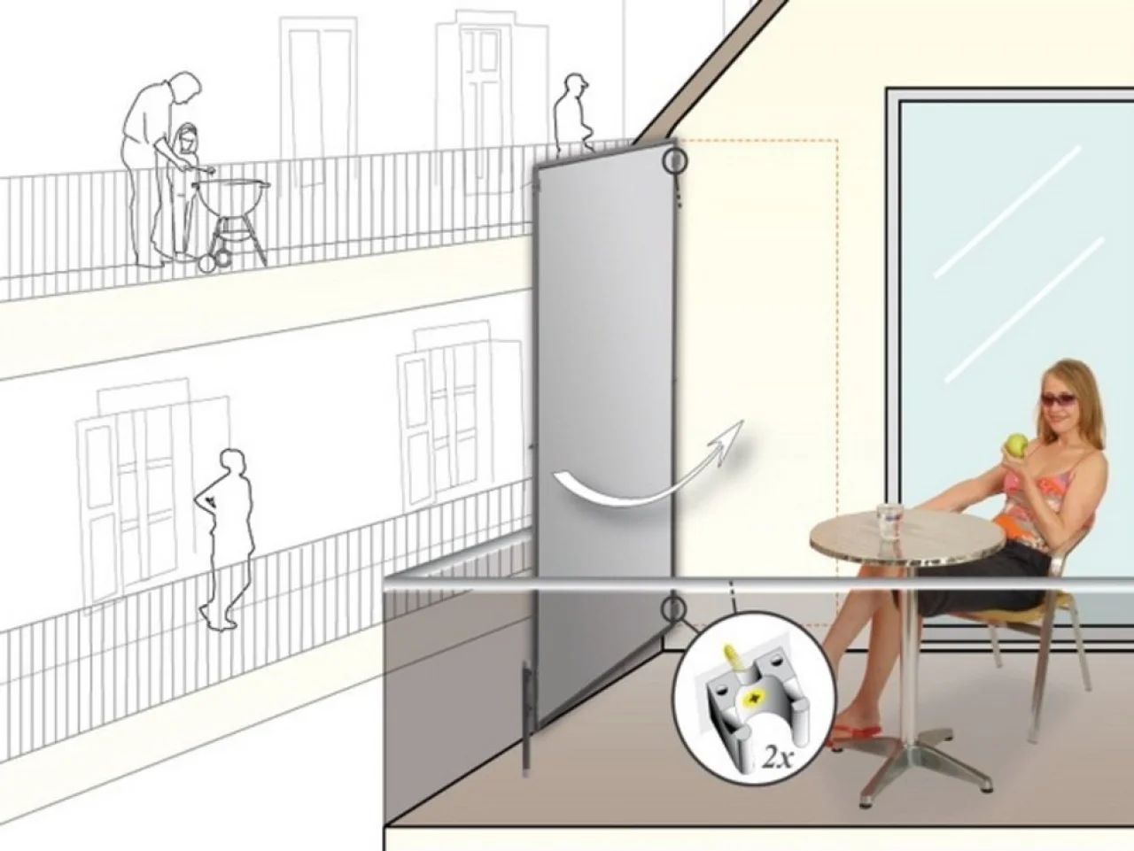 Ein universaler Sichtschutz, praktisch und schnell aufgebaut. Besonders geeignet für kleine Balkons und Terrassen aber auch für Innenräume: in Büros, Praxen, Läden oder für die Gastronomie.