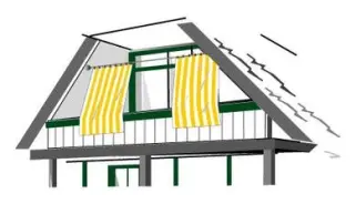 - einer Seilspannung oben als Sonnen-, Sicht- und Windschutz.