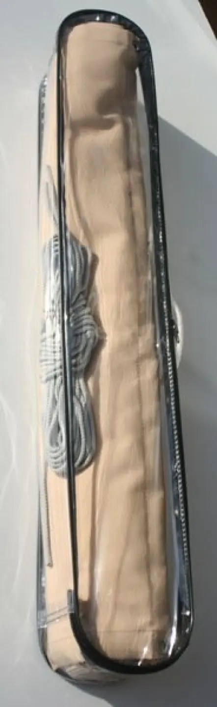 - Metallösen entlang der langen Seiten: oben und unten mit ca. 24,5 cm Abstand aus nichtrostendem Messing und zusätzlich vernickelt.