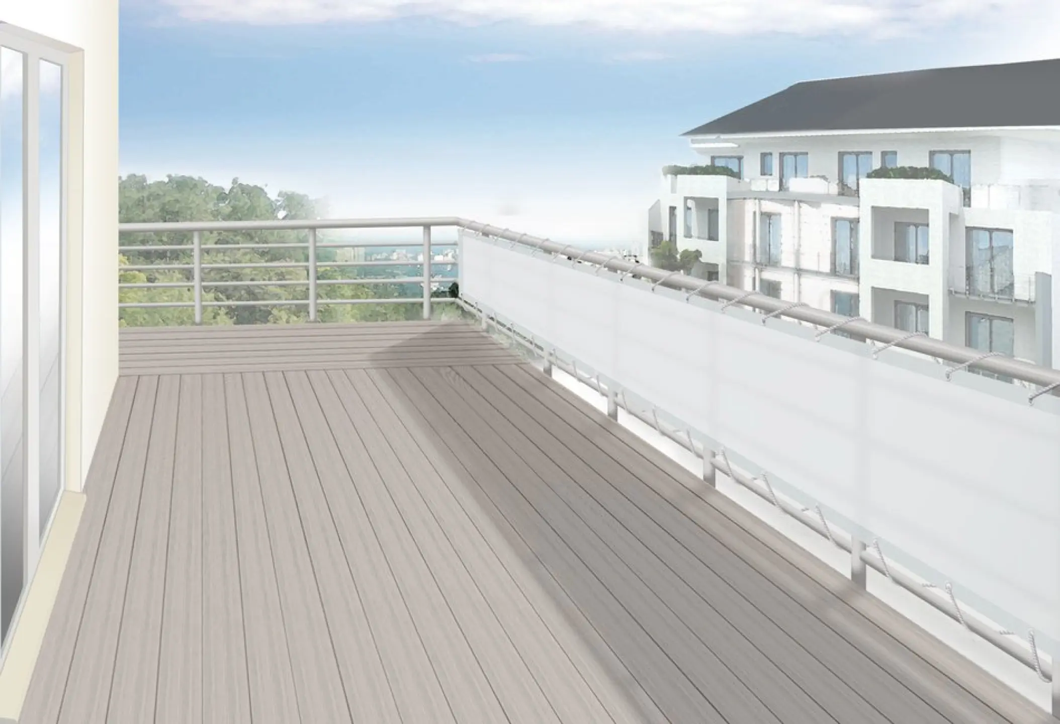 Balkonbespannung als hochwertiger Sichtschutz und Windschutz Balkon oder Terrasse.