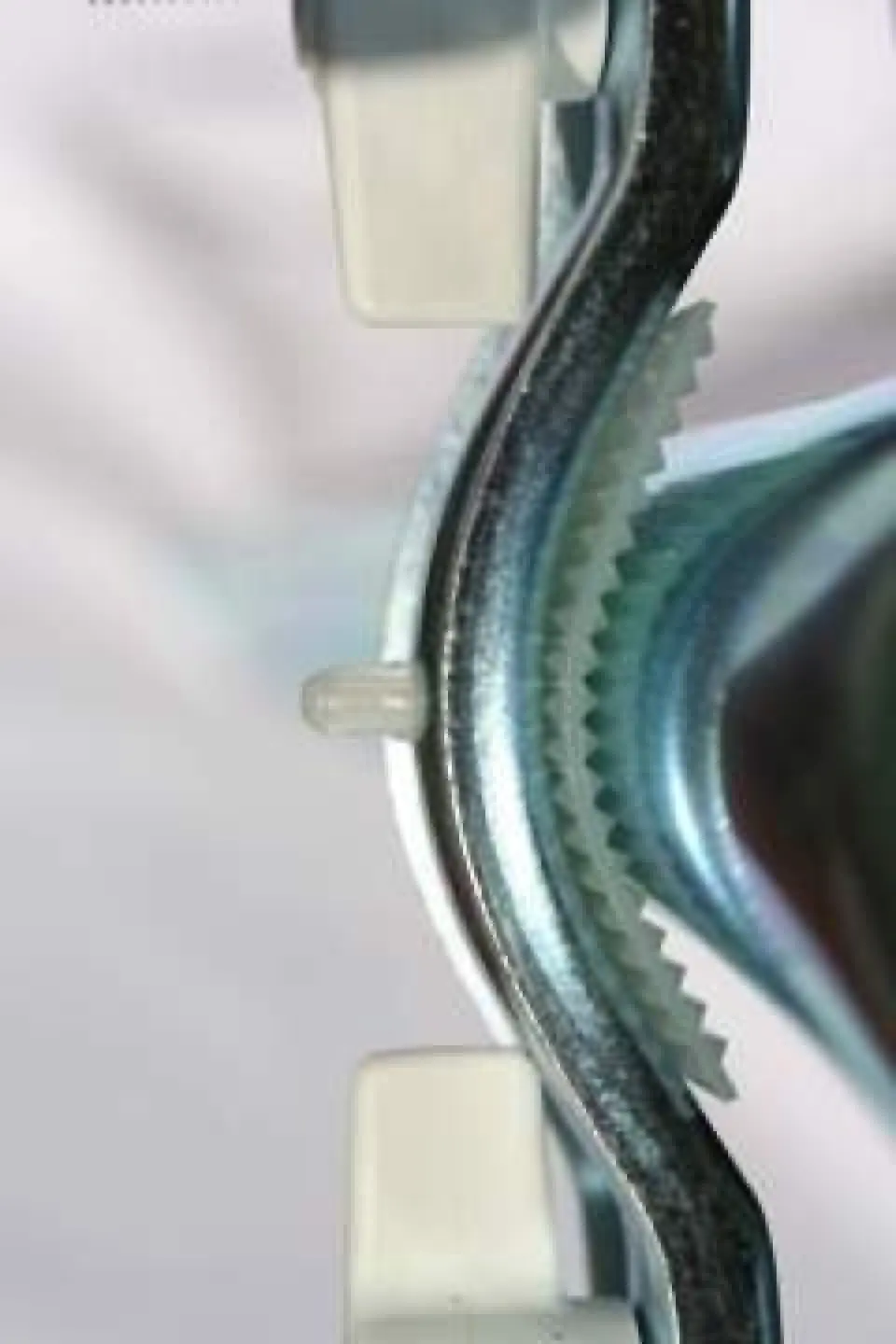 - die schwarze Montagekralle in die Rundung des Klemmhalter legen und mit dem Winkel an die Innenkante des Handlaufs