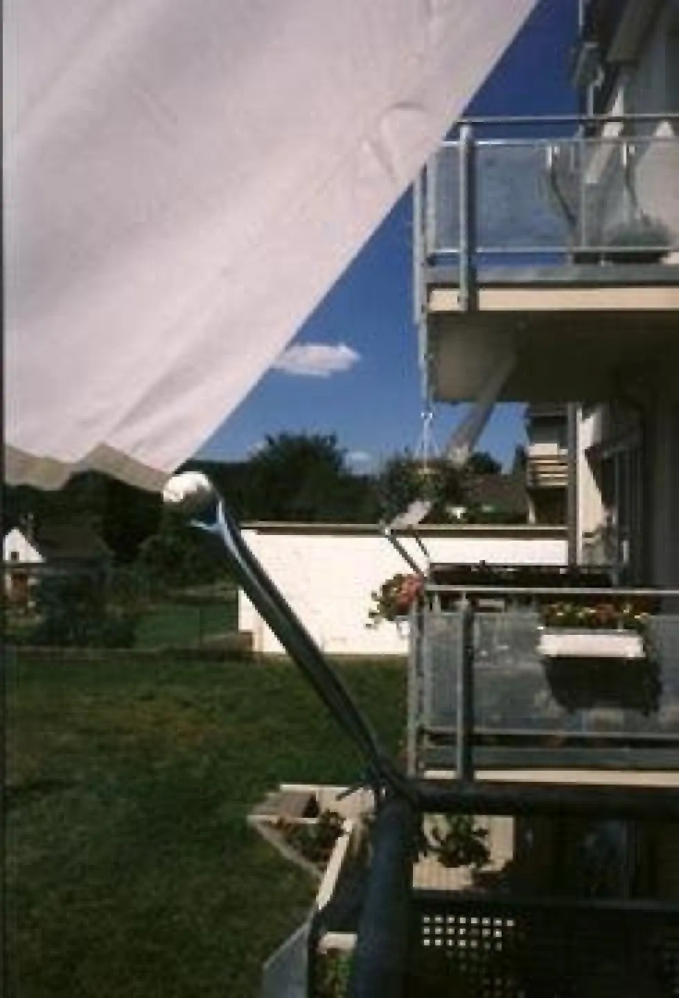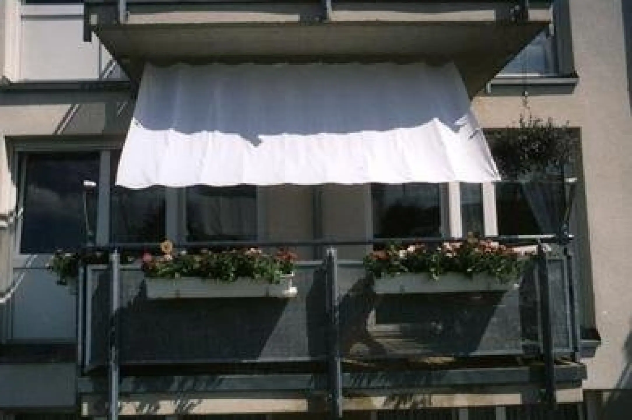 Sie müssen aber nicht die gesamte Balkonbreite abdecken, wie bei einer Kassettenmarkise erforderlich, weil Sie den Sonnenschutz ja dahin schieben können, wo Sie ihn brauchen. - ist die gesamte Segellänge größer als die Balkonbreite, können Sie den Stoff auch einfach in Falten stehen lassen.