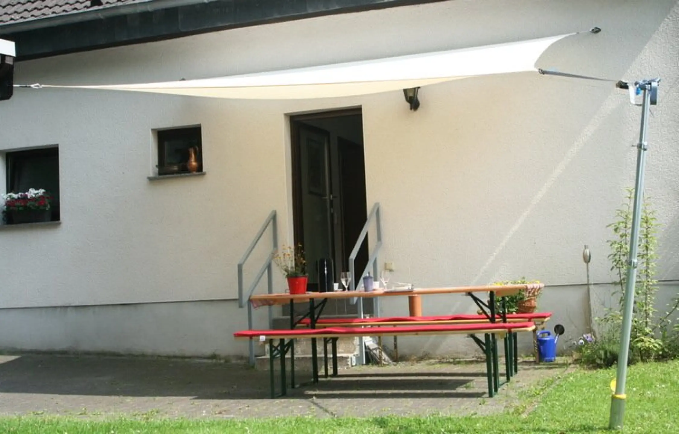 Das Sonnenschutzsegel muß immer unter Dauerspannung sein.