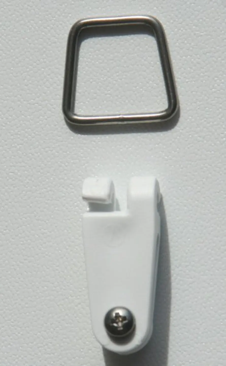 - 8x Trapezring aus Edelstahl der einfach in die Laufhaken eingedreht wird (mit einem Dreh um 90°) und dann beliebig befestigt oder aufgehängt werden kann: