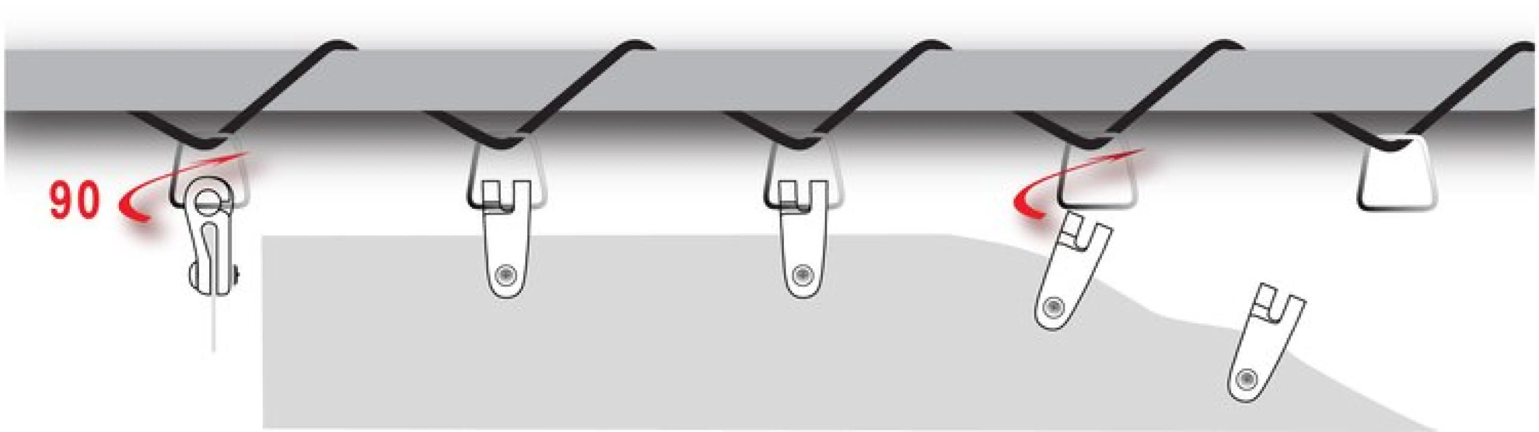 Peddy Shield Drehfix für eine schnelle und einfache Befestigung von Sonnensegeln am geraden Randsaum
