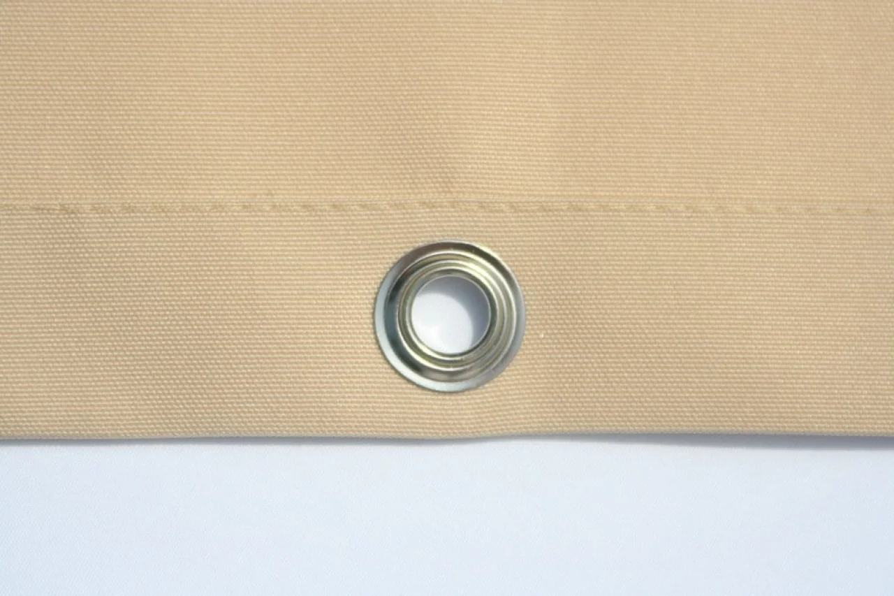Der 3 cm breit Randsaum ermöglicht Metallösen für die Befestigung (Abstand nach Wahl).