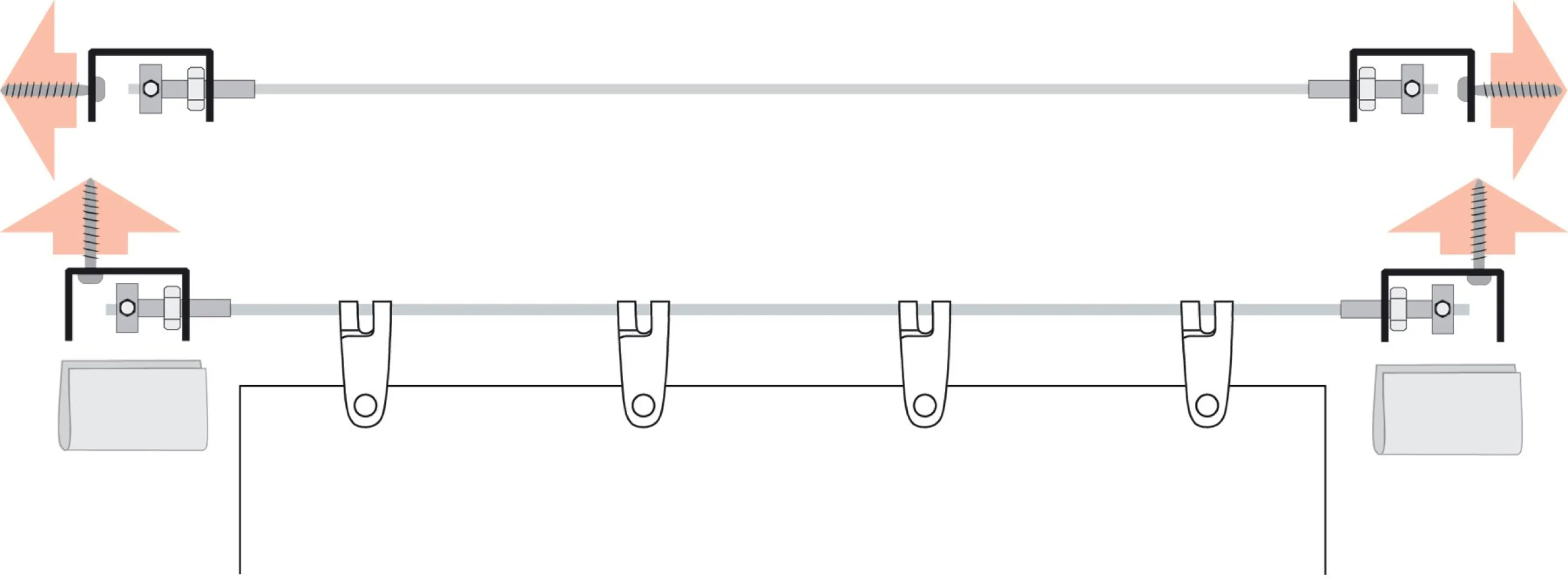 - das Edelstahlseil nach Erstmontage oder wenn die Laufhaken mal hakeln, fetten ein paar Tropfen Nähmaschinen-/Fahrradöl auf ein Läppchen und damit über das Seil ziehen - die Laufhaken gleiten wie geschmiert, mancher Kunde wundert sich