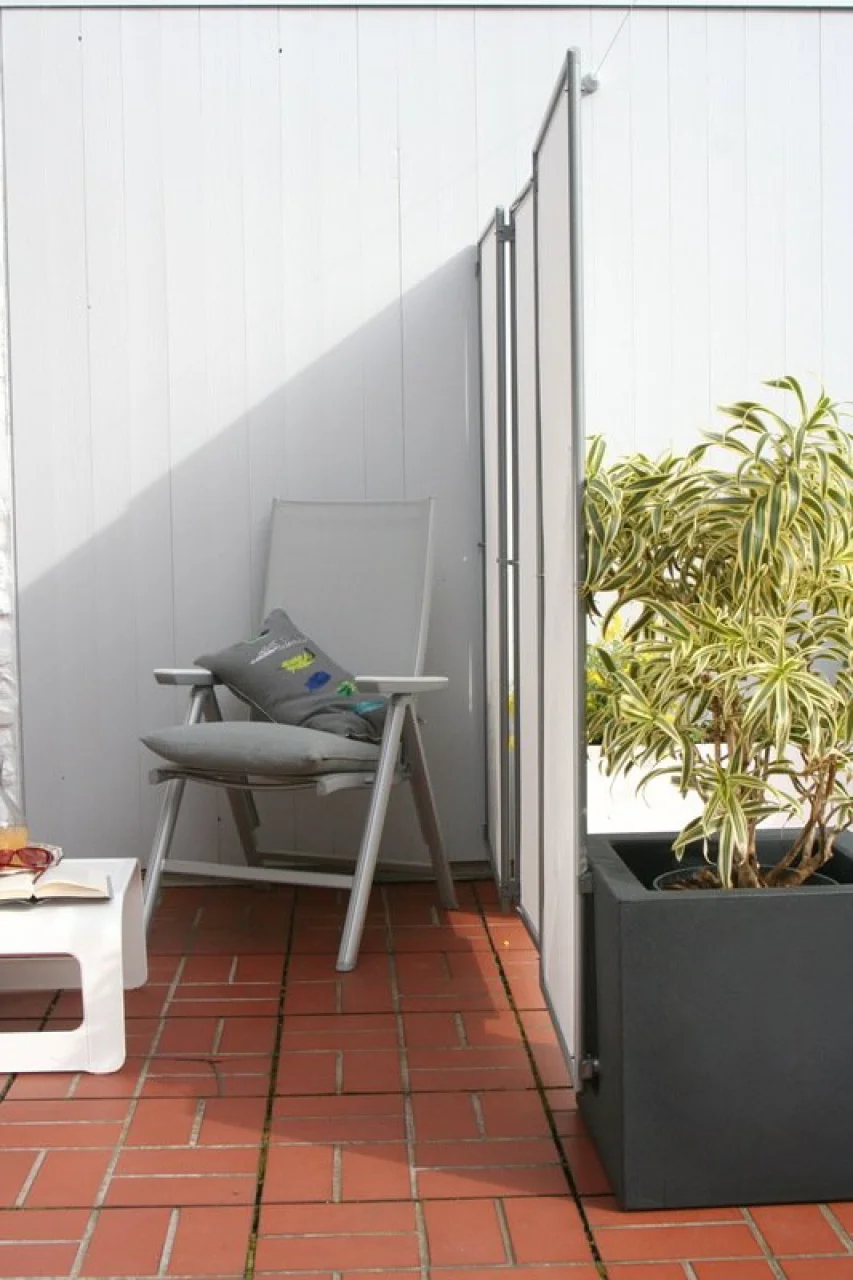 Optimale Stadnsicherheit bringt ein angesteckter Pflanzkübel mit 2x Wand-Clip und einer passenden Bepflanzung als zusätztliche Verschönerung. - optionales Zubehör - siehe Sichtschutz Paravent