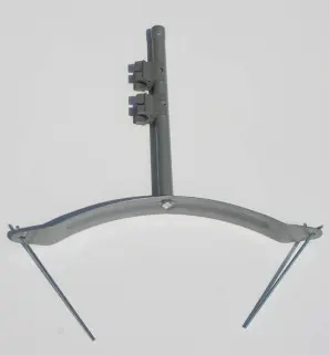- der obere Teil des Schraub-Erdankers wird stabil über eine M8 Schraubverbindung aufgedreht und an ihn werden 2x Verbindungs-Clips angesteckt, die die Steckverbindung zu den Paravent Rahmen der Umkleide Schnecke (4) bilden.