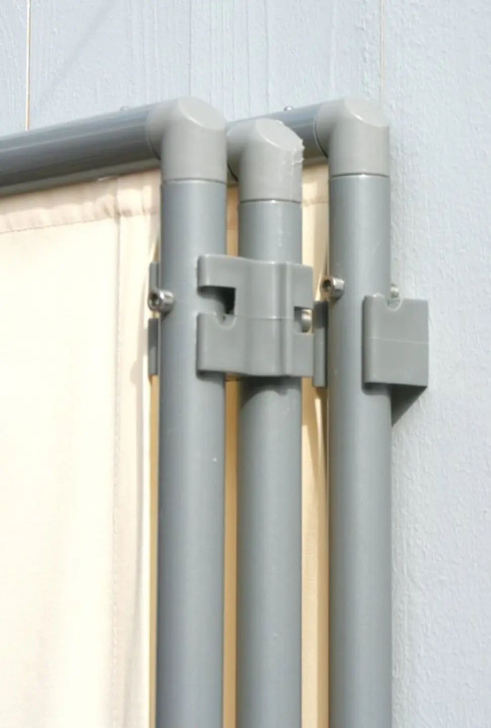 - komplett mit Wand-Clips zur wandseitigen Befestigung von Paravent Rahmenelementen und 2x Standrohr zur Positionierung von Rahmen