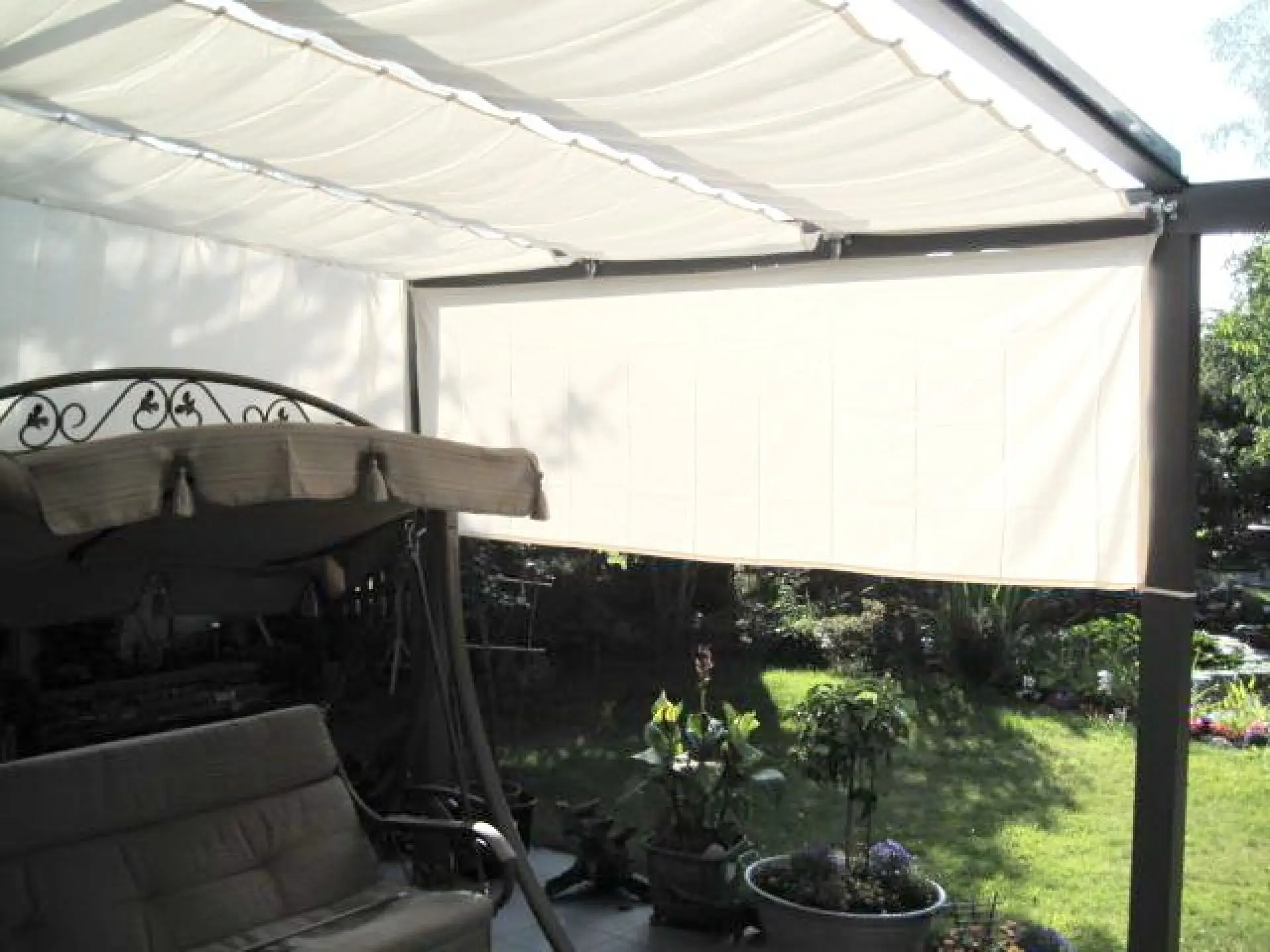 Alternativ finden Sie die Seilspantechnik Universal für die Innenbeschattung von Glas gedeckten Terrassenüberdachungen (Kunstglas oder Echtglas) oder Wintergärten.
