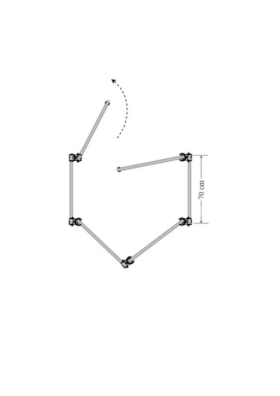 - so bilden die einzelnen Rahmenelemente eine gerade Linie, können aber in dieser Steckfunktion der Verbindungs-Clips nicht gefaltet werden.