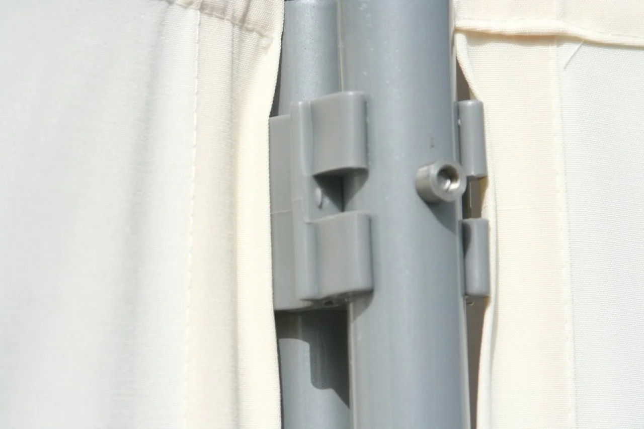 - die Bespannung Umkleidekabine Sportevent kann leicht über die Kederschiene aus den Paravent Rahmenelementen herausgezogen werden.