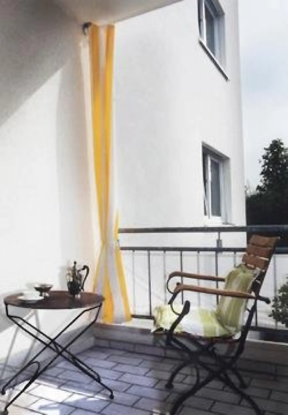 1. Mit dem entsprechenden Komplett-Bausatz Senkrecht-Sonnensegel für Balkone als Zweitsonnensegel.