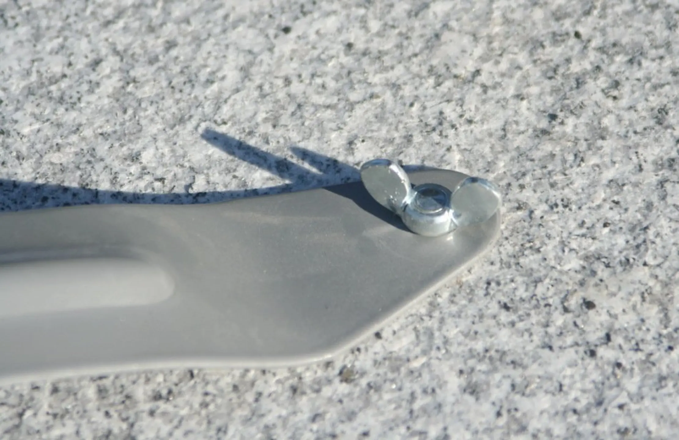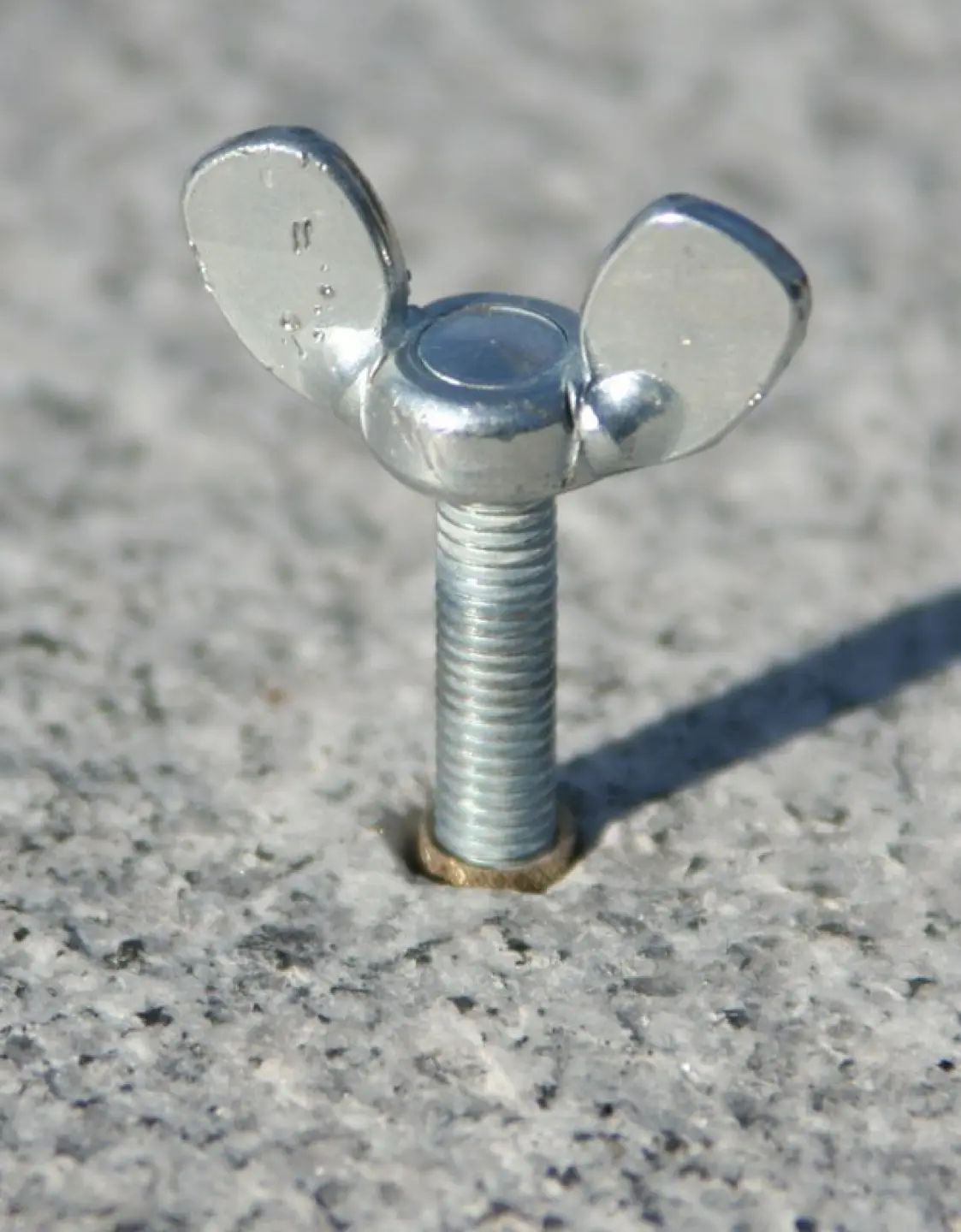 Aufschraubbar mit Flügelschraube und Messingdübel M6 auf eine Granitplatte oder Betonplatte,