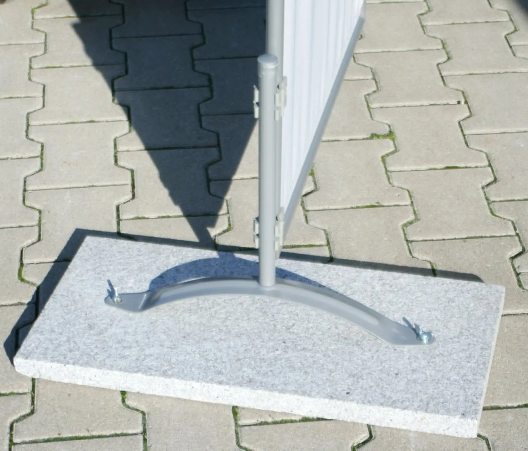 1x Combi-Ständer zur Stabilisierung vom Sichtschutz Paravent mit einer Granitplatte beschwert.