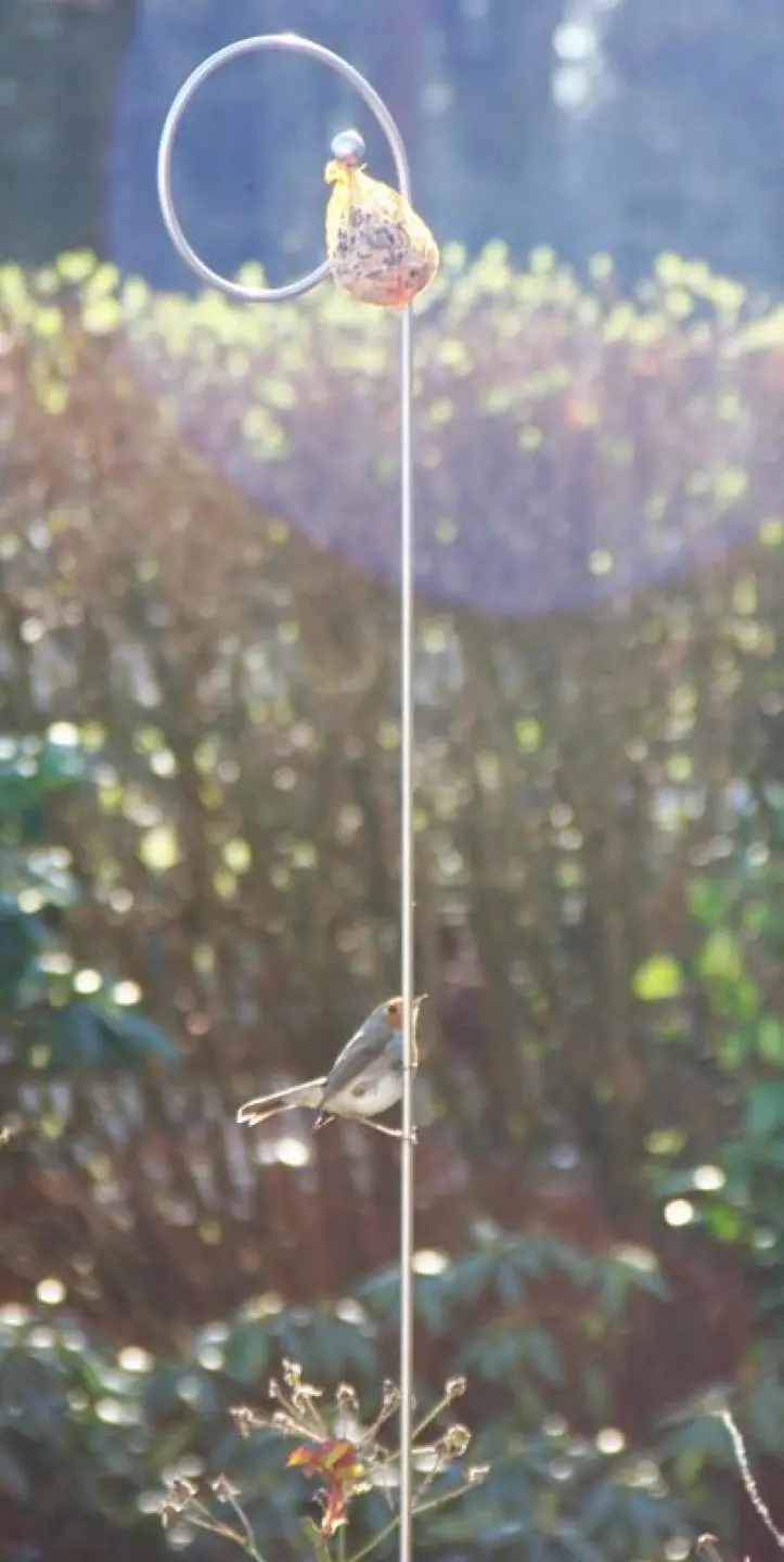 Sie werden einfach viel Freude an dem edlen Material, der guten Verarbeitung und der etwas ungewöhnlichen Form haben, vor allem wenn Meisen sich strecken, den angehängten Futterknödel zu erreichen.