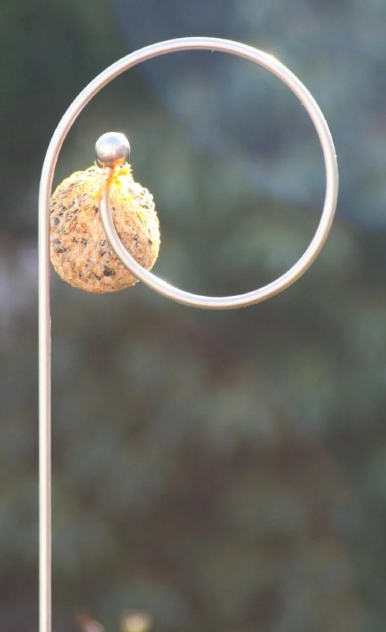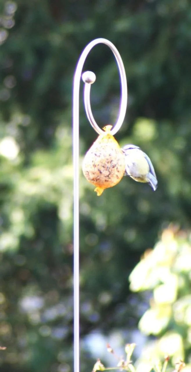Sie werden einfach viel Freude an dem edlen Material, der guten Verarbeitung und der etwas ungewöhnlichen Form haben, vor allem wenn Meisen sich strecken, den angehängten Futterknödel zu erreichen.