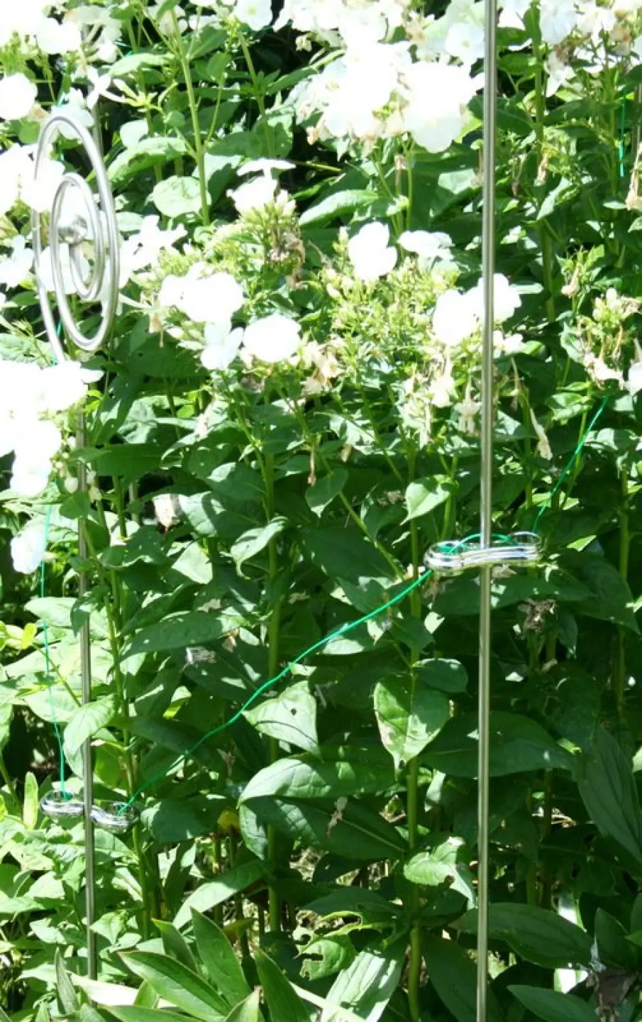 Der Chrom-Clip hält Bänder, Schmuckemente und den Bindedraht zum Hochbinden von Stauden und anderen Beetpflanzen.