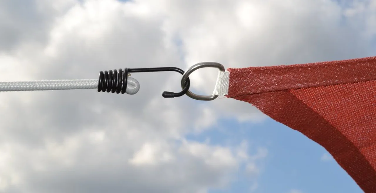 Die Spanngurte halten das Sonnenschutzsegel straff gespannt und können harte Windkräfte gut aufnehmen.
