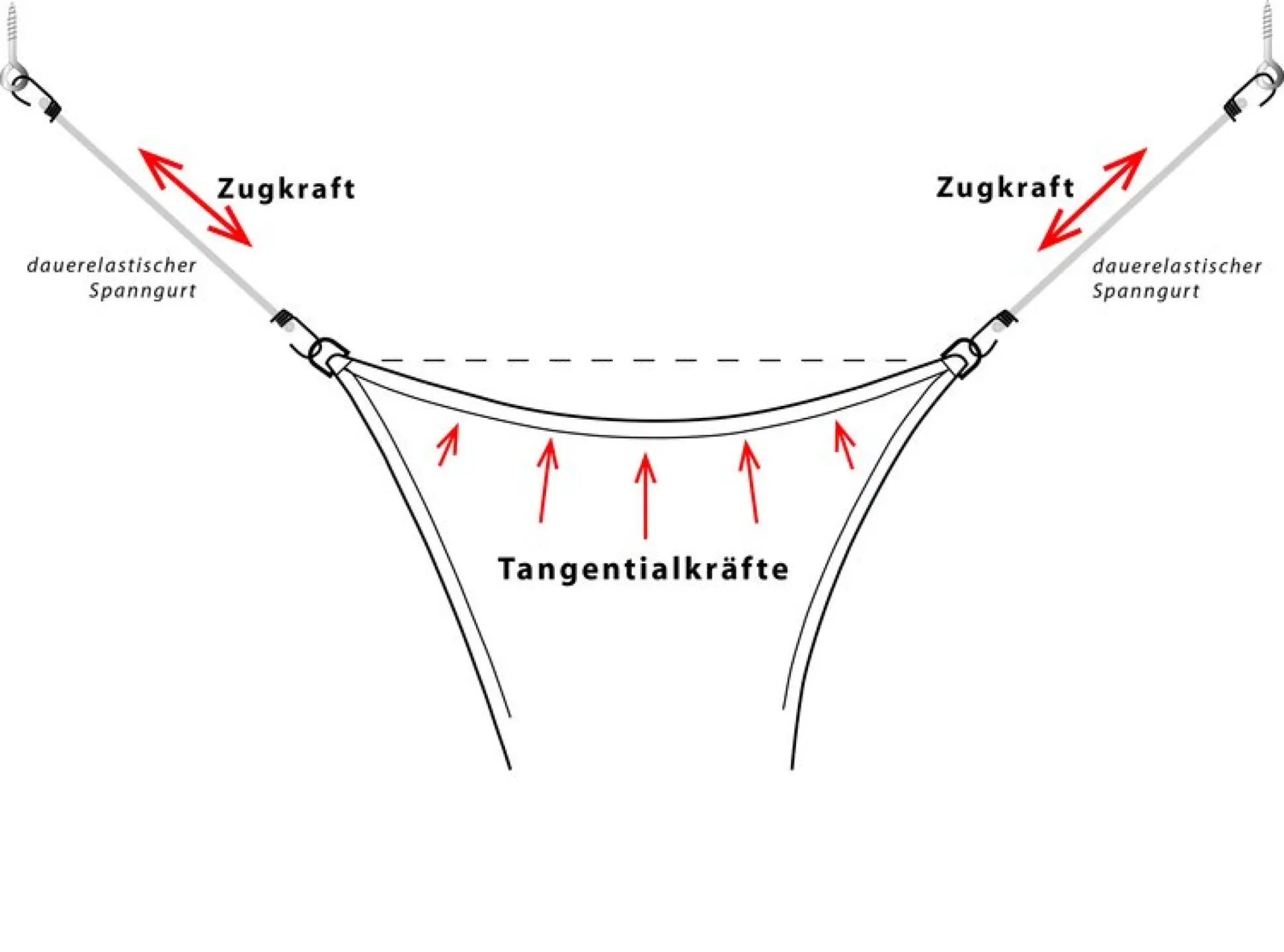 3x dauerelastische Spanngurte - die das Sonnenschutzsegel straff gespannt halten und die Windkräfte gut aufnehmen können.