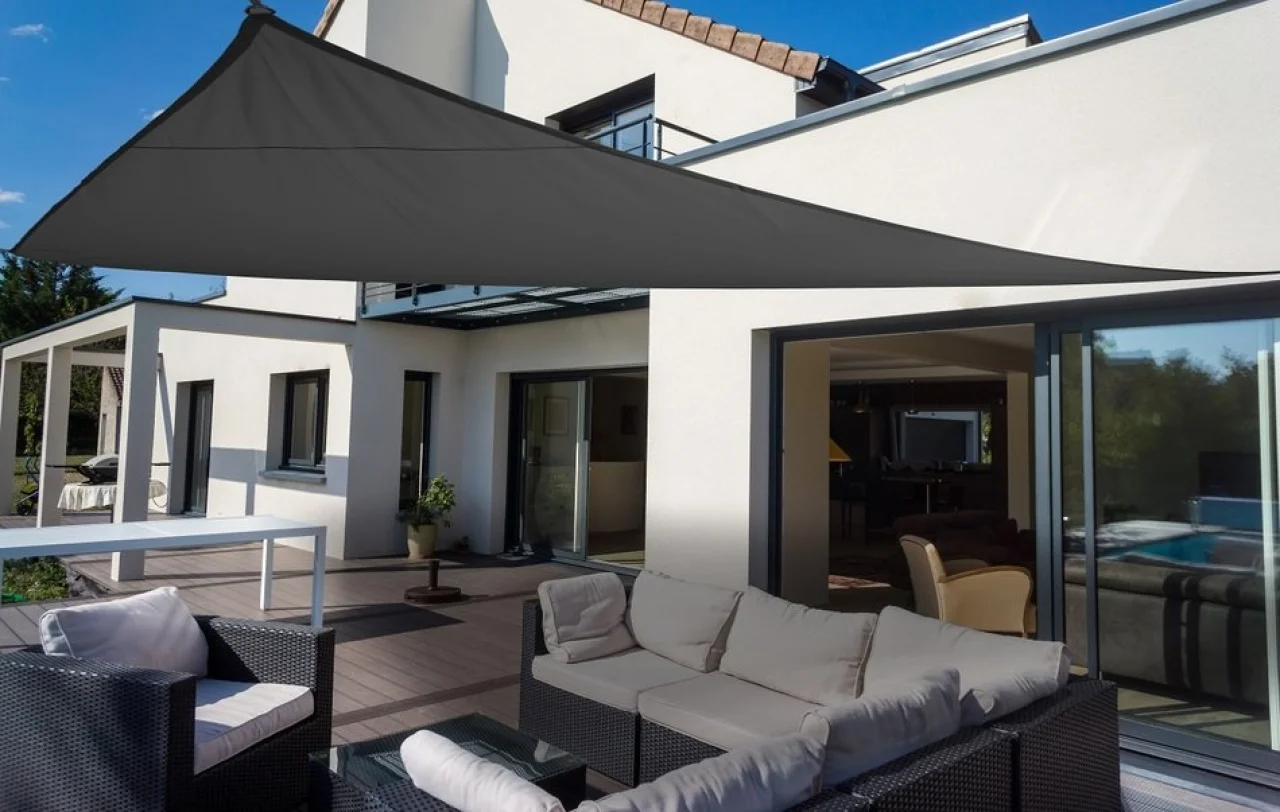 Ein schönes, pflegeleichtes und robustes Dreiecksegel für die ganze Sommersaison, auch bei Regen.