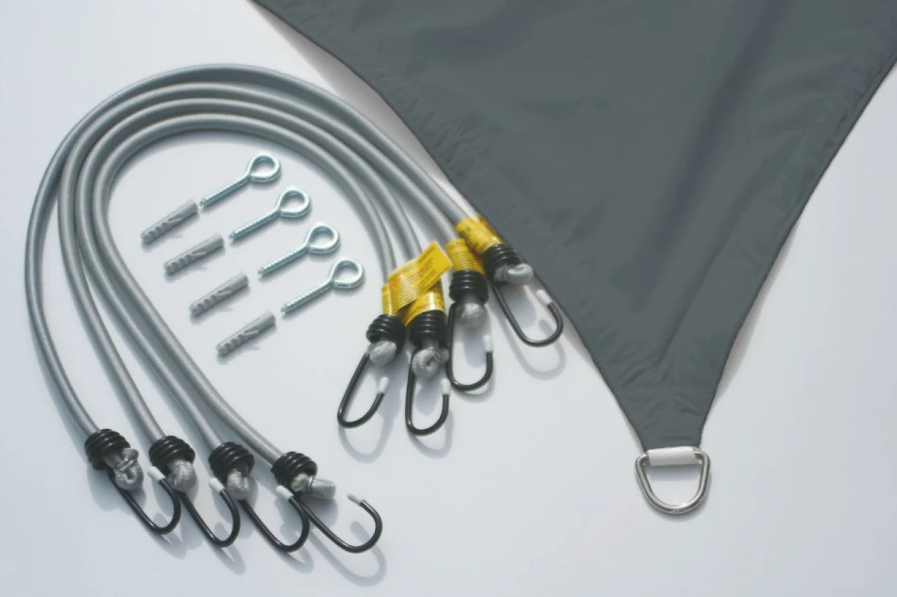- 4x dauerelastischer Spanngurt - das Sonnenschutzsegel straff gespannt zu halten und vor hohen Windkräften zu schützen.