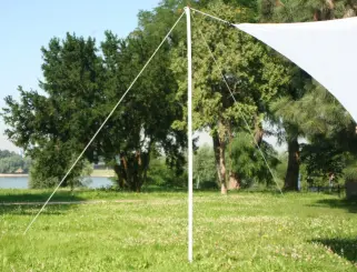 a) Leichte Montagestange Sonnensegel konkav 2,5 mfür eine vorübergehende Sonnensegelmontage mit einem bis zwei Fixpunkten.