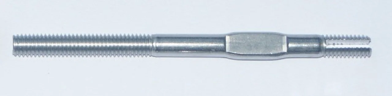 - darauf wird eine M6 Verbindungsmuffe (aus Edelstahl) gedreht (hat einen Außensechskant)
