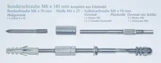 Aufsatzschraube für Kletterhilfe mit 2x metrischem Gewinde M6: 6x90 mm (90 mm lang)