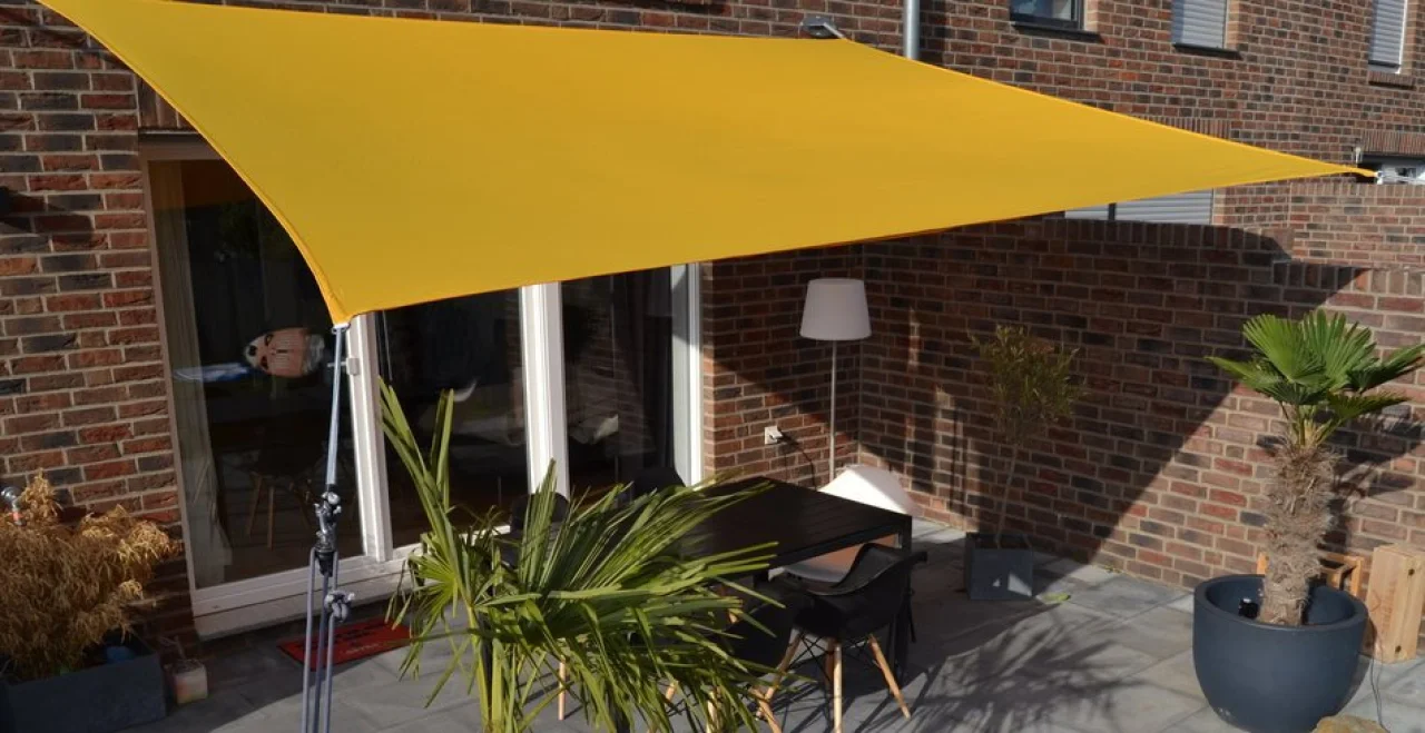 Fehlen Befestigungspunkte in Richtung Garten, finden Sie hier Metallstangen Sonnensegel in großer Auswahl, um dann das Vierecksonnensegel konkav endgültig ausspannen zu können.