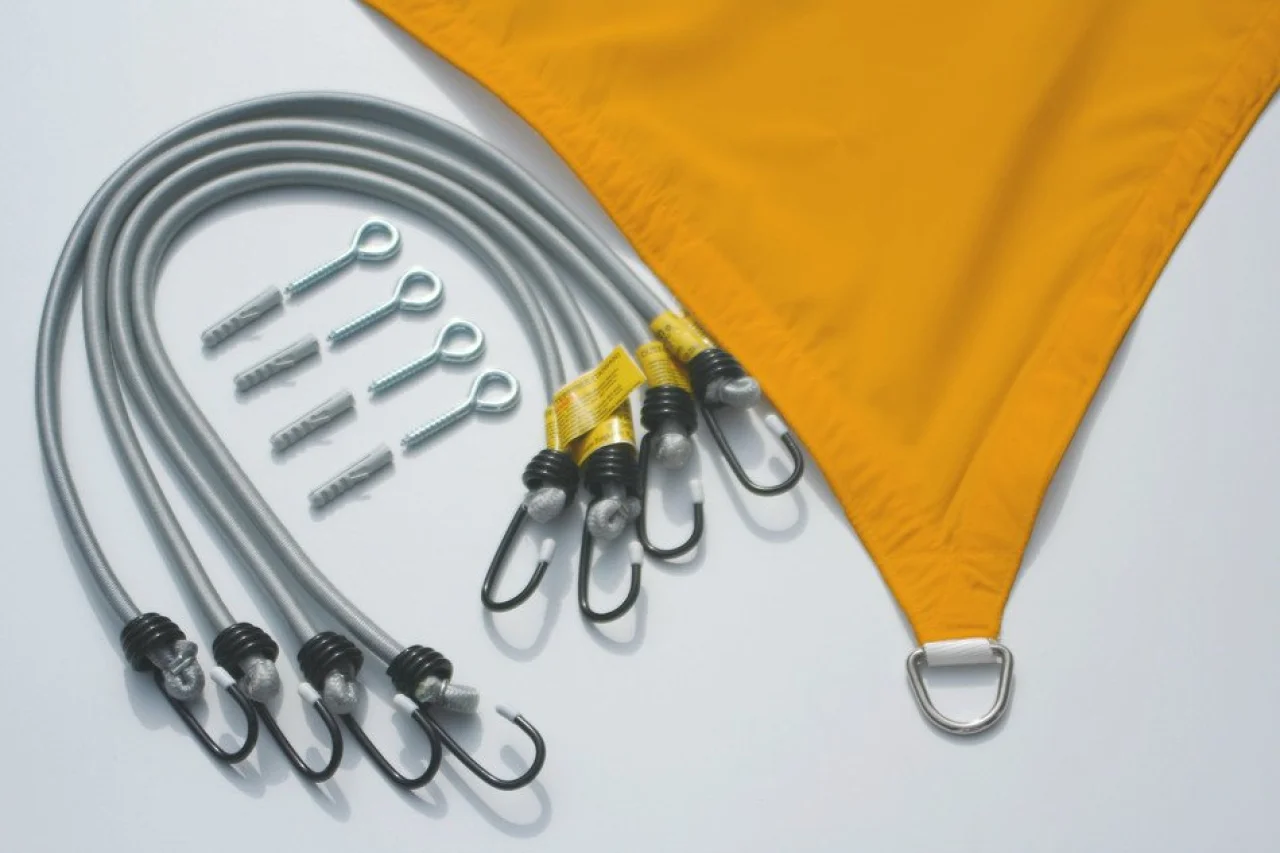 4x dauerelastischer Spanngurt - der das Sonnenschutzsegel straff gespannt hält und die Windkräfte gut aufnehmen kann.