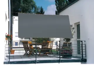 - Der Wind ist kein Problem, wenn Sie das Sonnensegel Seilspanntechnik zusammenschieben und so die Angriffsfläche verkleinern (evtl. mit Laufhakenstopper als Zubehör das Segel in der "Parkposition" feststellen).