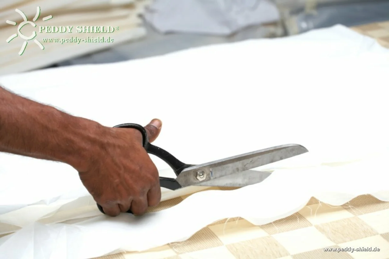 Unser Nähservice kürzt Ihr Sonnensegel und näht wieder einen 2 cm Randsaum an.