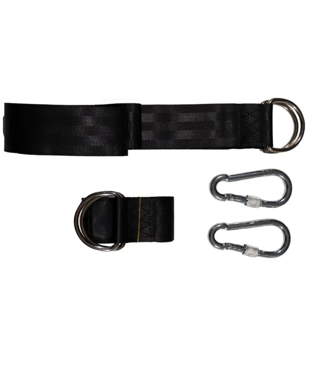 5 cm breit, 148 cm lang mit 2 D-Ringe, 5 cm, aus Edelstahl - 2 Edelstahl-Karabiner, 9 cm, schraubbar